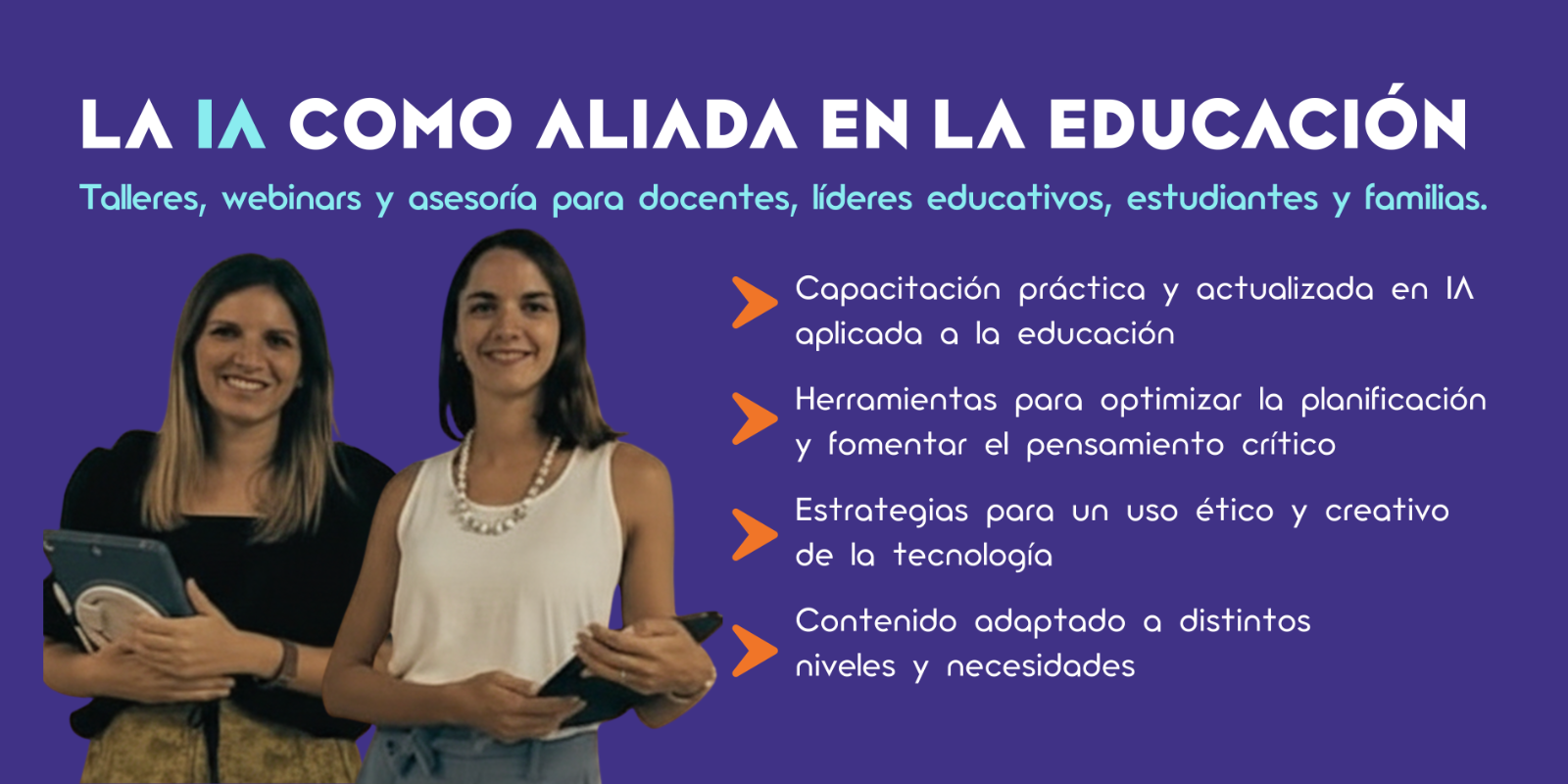 Somos Bárbara Olavarría y Belén Mastellone, educadoras con trayectoria en innovación y liderazgo pedagógico. AiMAZING CLASS nació en el aula y para el aula, como un proyecto que acompaña a docentes e instituciones a integrar la inteligencia artificial de manera ética, pedagógica y estratégica. Nuestro objetivo es mejorar el aprendizaje, optimizar la labor docente y fortalecer el bienestar educativo sin perder el foco humano.