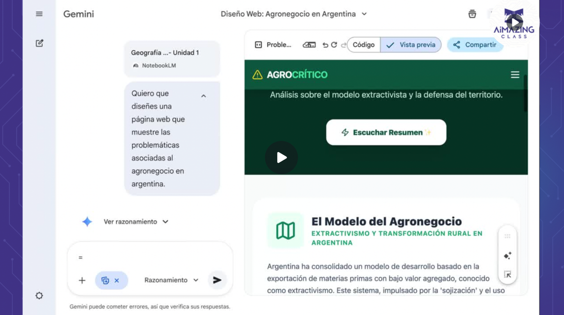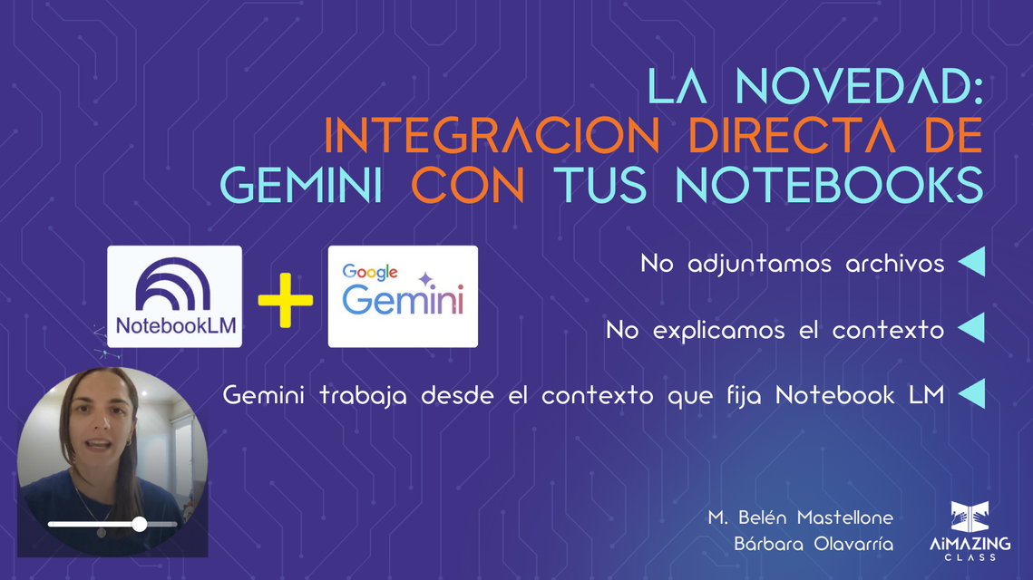 Vas a aprender cómo usar NotebookLM como tu base pedagógica segura —el espacio donde organizás, delimitás y cuidás tus contenidos— y cómo potenciar ese trabajo integrándolo con Gemini para crear, adaptar y pensar con IA, sin delegar decisiones clave.